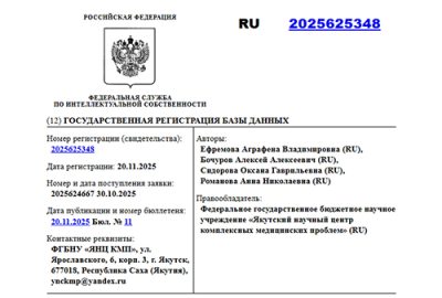 База данных «Метаболические показатели коренных жителей Арктического района Якутии»