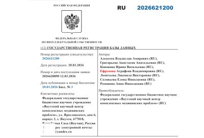 Научными сотрудниками и врачами Клиники ЯНЦ КМП получена новая база данных