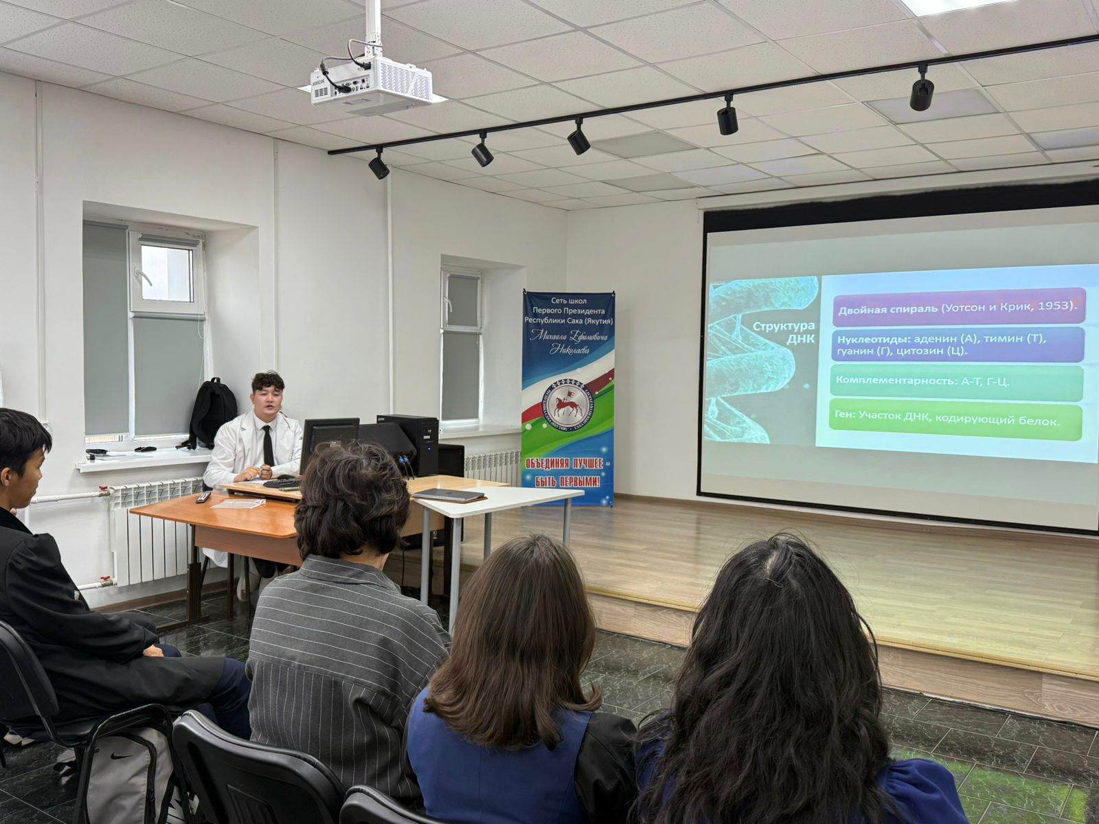 27 сентября 2025 года научный сотрудник лаборатории наследственной патологии ОМГ ЯНЦ КМП Крылов Алексей Васильевич провёл серию научно-популярных лекций для учащихся МБОУ «Намская улусная гимназия им. Н.С. Охлопкова» по приглашению администрации гимназии.