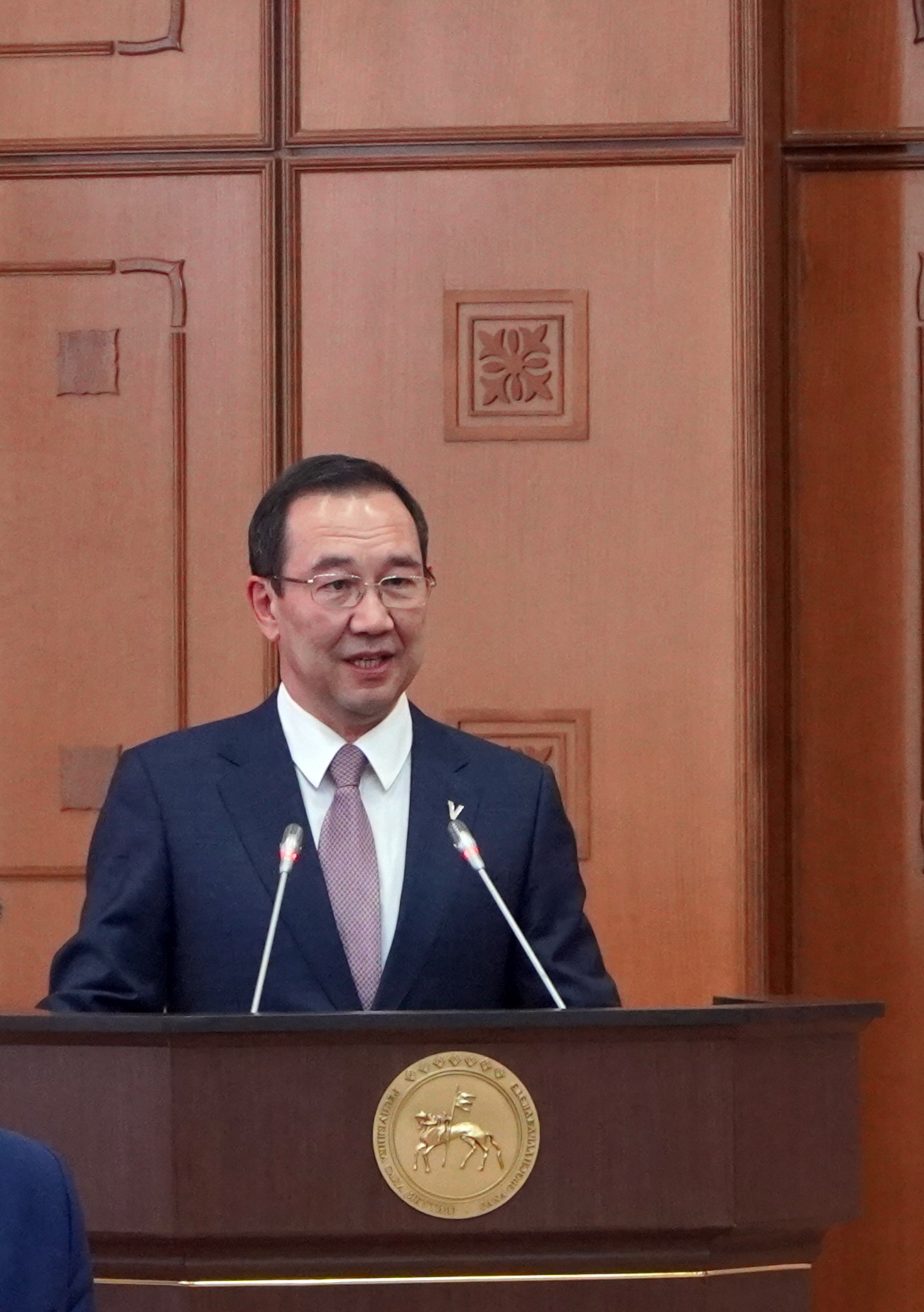С приветственным словом перед участниками заседания выступил Глава Республики Саха (Якутия) Айсен Сергеевич Николаев. В своем выступлении Айсен Сергеевич подчеркнул, что научные открытия и разработки являются локомотивом прогресса, особенно в условиях сурового климата Якутии и выразил уверенность, что ученые региона внесут весомый вклад в решение актуальных задач, связанных с освоением природного потенциала Севера, сохранением уникальной экосистемы Арктики и повышением качества жизни населения. Особое внимание было уделено необходимости тесного взаимодействия науки, образования и реального сектора экономики для ускорения внедрения инноваций.