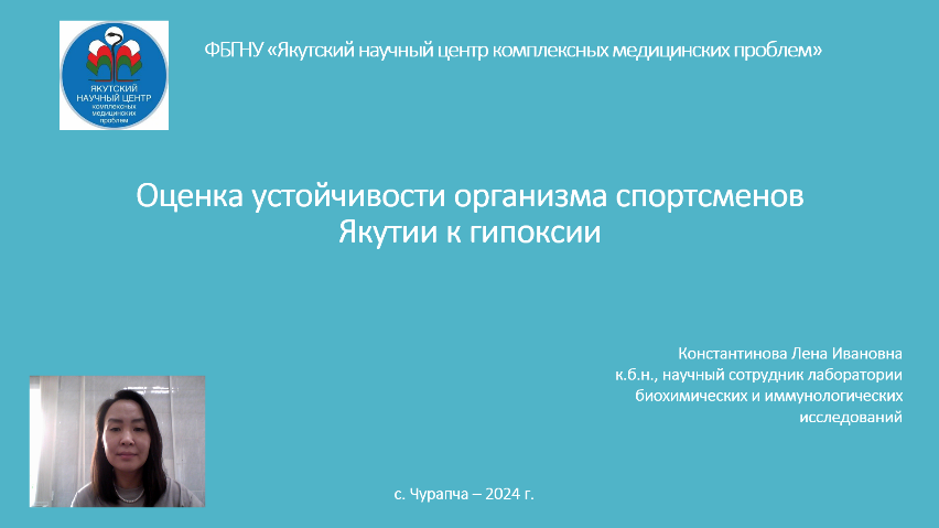 10 апреля 2024 г. научные сотрудники лаборатории биохимических и иммунологических исследований ОЭХНИЗ ЯНЦ КМП приняли активное участие в VIII Всероссийской научно-практической конференции «ФИЗИЧЕСКАЯ КУЛЬТУРА, СПОРТ, НАУКА И ОБРАЗОВАНИЕ», организованной ФГБОУ ВО «Чурапчинский государственный институт физической культуры и спорта». Научные сотрудники выступили с онлайн-докладами в секции №3 «Медико-биологические аспекты спортивной подготовки».