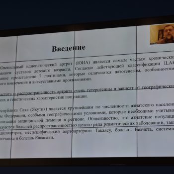 Профессором кафедры госпитальной педиатрии Санкт-Петербургского государственного педиатрического медицинского университета Минздрава России д.м.н. Костиком Михаилом Михайловичем представлены итоги совместной работы с якутскими исследователями Боескоровой С.Г., Аргуновой В.М., Афонской М.В., Слепцовой П.А., Бурцевой Т.Е., Леонтьевой Л.В. ‒ эпидемиологическая характеристика ювенильного идиопатического артрита у детей в Республике Саха (Якутия).