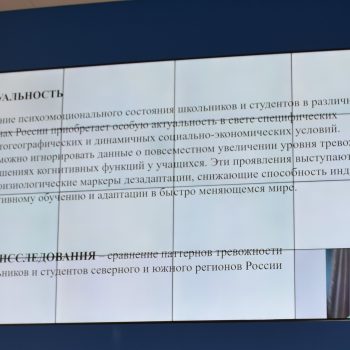 Сотрудниками лаборатории нейрокогнитивных процессов и технологий НИЦ «Арктика» Дальневосточного отделения РАН (г. Магадан) представлен ряд докладов. Бартош Ольга Петровна, к.б.н., с.н.с., рассказала о результатах исследования тревожности в разных климато-географических регионах России (север и юг) у школьников (младшие классы – старшие) и студентов (среднее специальное и высшее образование). Выявлены схожие тенденции тревожности у младших школьников и студентов в обоих регионах. Отмечено, что в северном регионе больше подростков с высокой тревожностью. Независимо от региона у людей с повышенной тревожностью наблюдается психологический профиль, мешающий уверенности, саморегуляции и адаптации к стрессу, что в итоге снижает качество жизни. Бартош Татьяна Петровна, к.б.н., в.н.с., представила итоги исследования акцентуаций характера у магаданских подростков 13 и 15 лет. Выявлено, что у девочек профиль акцентуаций статистически значимо выше, чем у мальчиков в обоих возрастах. Подростки с низкой нервно-психической устойчивостью значительно отличаются от высокоустойчивых сверстников. Отмечена тесная связь акцентуаций с психофизиологическими особенностями и гендерной спецификой. Результаты важны для понимания формирования личности подростков-северян и применимы в образовании и школьной медицине. Немченков Александр Валерьевич, м.н.с., отметил эффективность социально-психологического тренинга (СПТ) для повышения стрессоустойчивости, психологического здоровья и качества жизни. Тренинг, проведенный с педагогами Магадана, показал значительные положительные результаты. Рекомендуется применение СПТ в качестве ключевого элемента адаптационных программ для специалистов, работающих в экстремальных условиях Крайнего Севера; к.пс.н., н.с. Рябова Марьям Амировна в своем докладе представила результаты оценки динамики функционального состояния ЦНС у мужчин молодого, зрелого и пожилого возраста, проживающих на Севере. Выявлено статистически значимое ухудшение показателей ЦНС с возрастом (p<0,01). Увеличен латентный период зрительно-моторной реакции и снижена точность реакций, что говорит о нарастании инертности нервных процессов. Раннее начало инволюционных изменений ЦНС наблюдается у мужчин-северян: ухудшение функционального состояния и работоспособности начинается уже в 37±1,41 года, а к пожилому возрасту достигает показателей, соответствующих патологическим изменениям I степени по Лоскутовой; Аверьянова Инесса Владиславовна, д.б.н., профессор ДВО РАН, г.н.с., зав. лабораторией физиологии экстремальных состояний рассказала об особенностях полярного метаболического типа в условиях современного Севера и отметила, что углеводный обмен имеет выраженные “северные” особенности, различающиеся у жителей северо-западных и северо-восточных регионов России. Проживание в разных климатогеографических зонах РФ формирует разнообразные вегетативные, эндокринные и метаболические профили; к.б.н., с.н.с. Лоскутова Алеся Николаевна почеркнула изменения антропометрических параметров у школьников из числа коренных малочисленных народов Севера, свидетельствующих о нарастании темпов акселерации и продолжающихся процессах астенизации, в большей мере наблюдаемых у мальчиков, чем у девочек. Наблюдаются разновременности темпов изменения ф